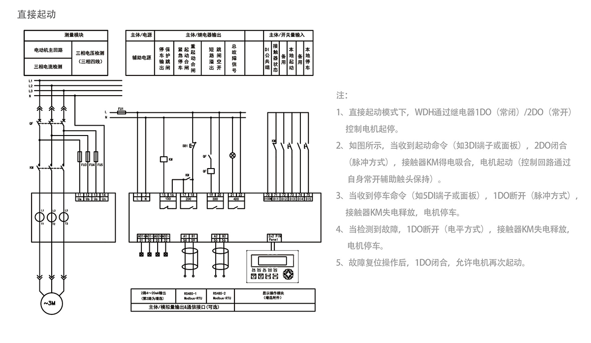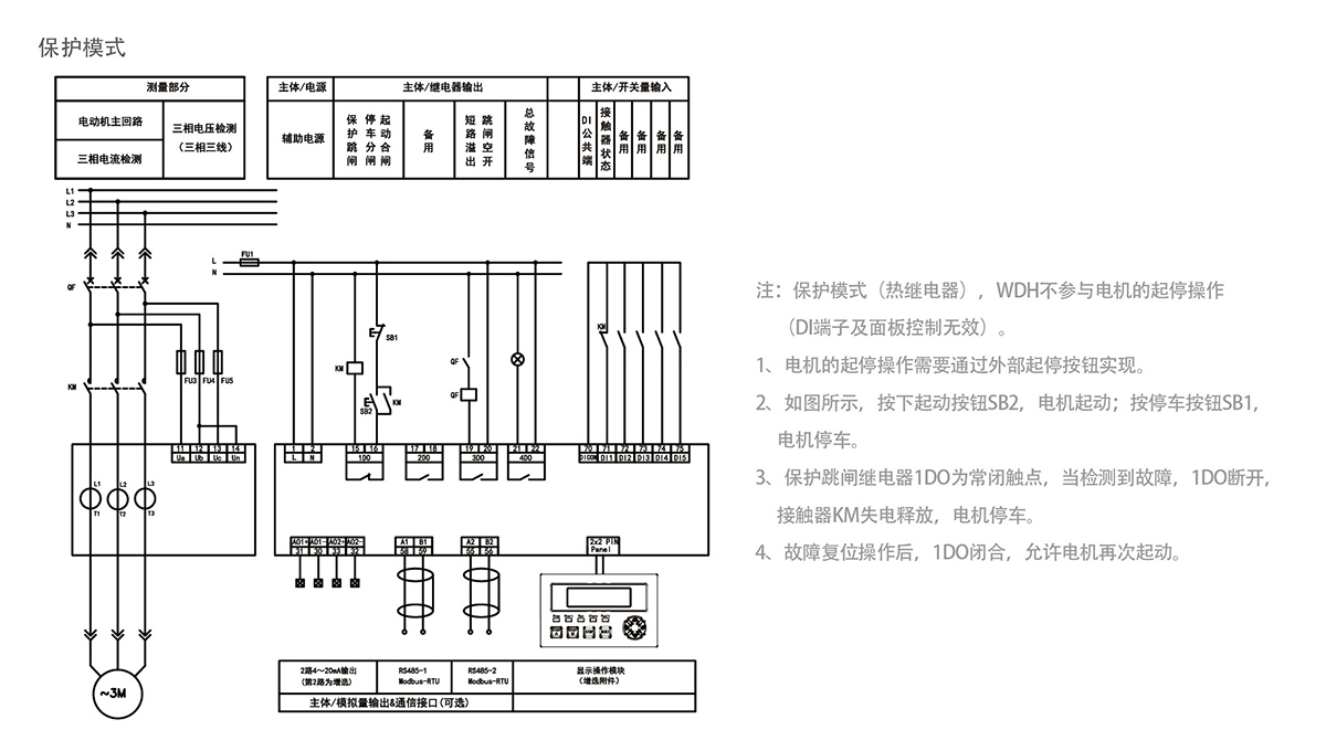 WDH-31-210電動機保護控制器可支持5路可編程開關(guān)量輸入(干接點),4路可編程繼電器翰出。所有的開入開出都…