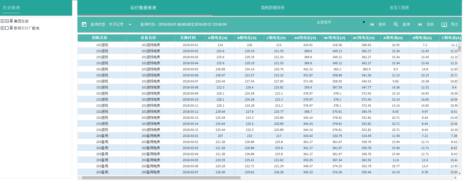 系統(tǒng)可提供日?qǐng)?bào)表、季報(bào)表、月報(bào)表、年報(bào)表等個(gè)類(lèi)報(bào)表,方便供用戶(hù)對(duì)電流、電壓、功率負(fù)荷、電能計(jì)量等歷史數(shù)據(jù)進(jìn)行查詢(xún)、統(tǒng)計(jì)和分析。