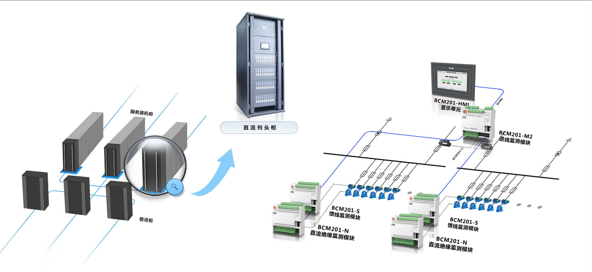 高壓直流系統的安全運行及穩定可靠,可通過直流精密配電單元對直流列頭柜內各個回路實現高精度的電量監測,實現精細化能耗管理,同時通過絕緣監測模塊可對整個直流系統對地絕緣性能監測,實現監視判斷及預防接地故障發生,直流精密配電單元數據可通過數字通信上傳至動環監控系統,為后期運營管理提供可靠保障。